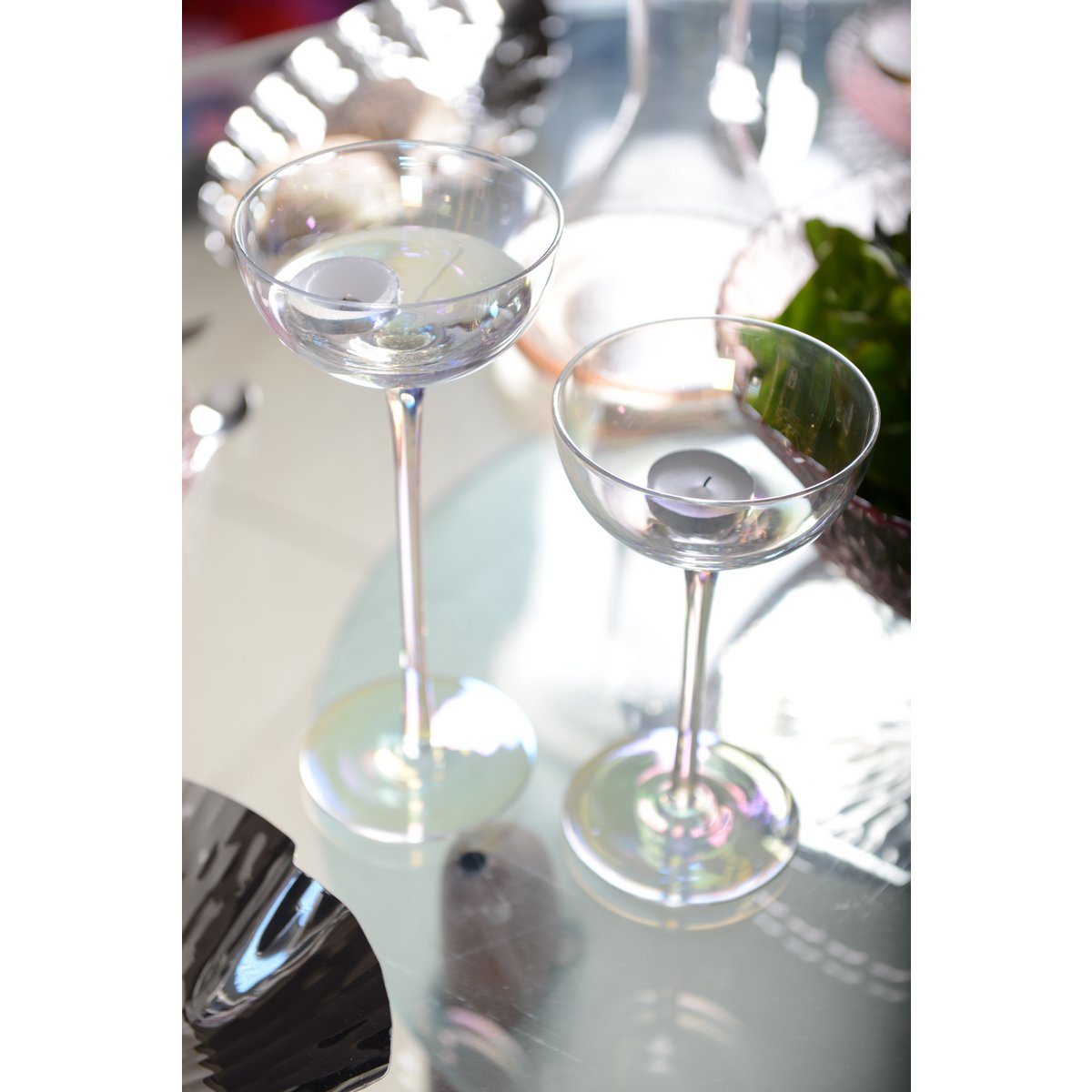 Ideal to decorate a party table or to illuminate a relaxation area, these pearly glass candle holders integrate perfectly with any type of decoration. Their harmonious and sparkling design brings a touch of elegance, while creating a soothing atmosphere.