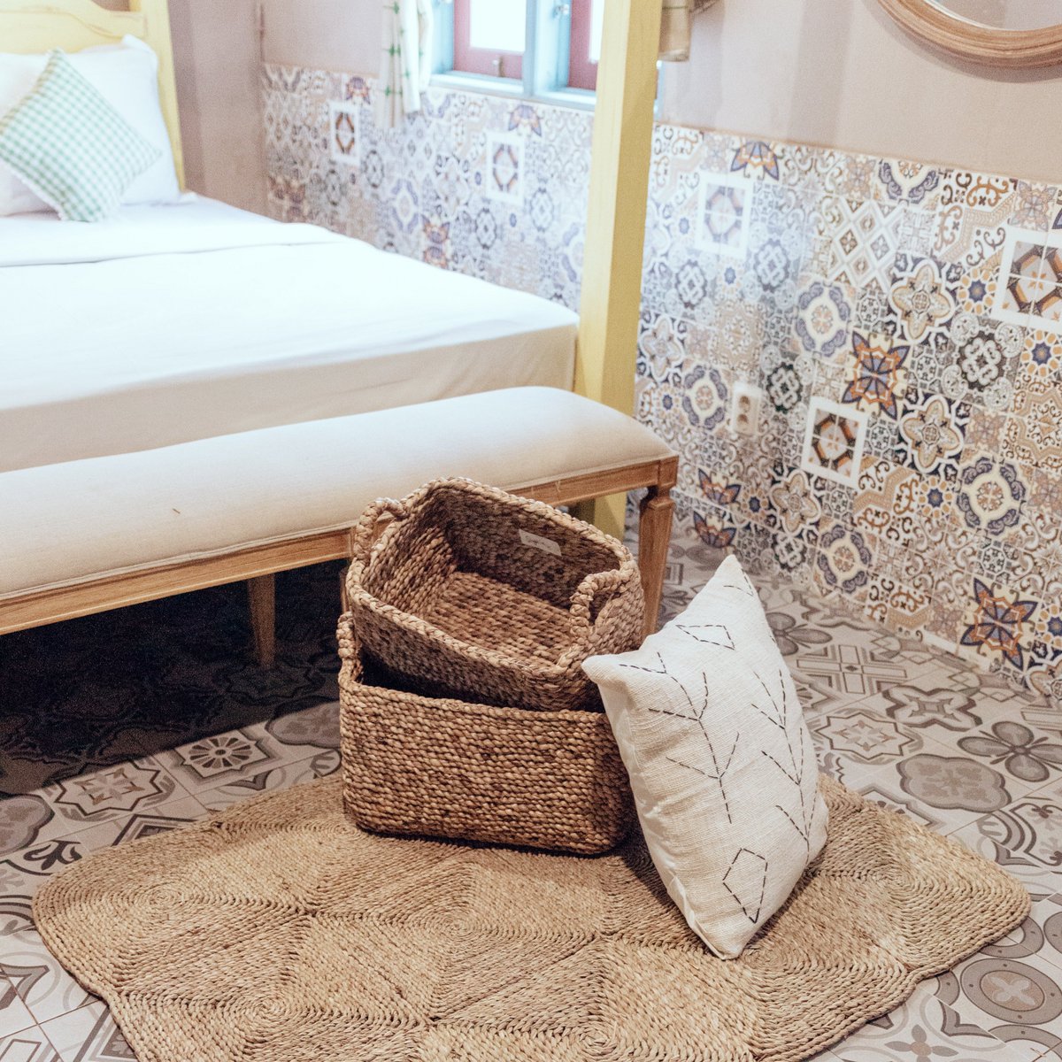 The water hyacinth is a tropical aquatic plant found on rivers and seen. They were actually brought up from South America, but also from Southeast Asia. There it gilds as a weed, as it multiplies incredibly quickly and can cover whole bodies of water with a carpet. The right lack of light and contact is killing all underwater life that belongs to the plants that are needed. In order for the plants to then be processed for further processing, the leaves will be lost and the thick stems will be gotten in the sun for three to seven days. The result is an abundance of possible, leading raw material for many woven goods here at Soeji!